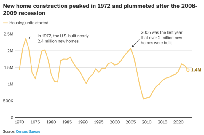 • New Home Construction: Last year, we added 1.4 million new homes for a population of 335 million—more people than in previous years with fewer homes built.