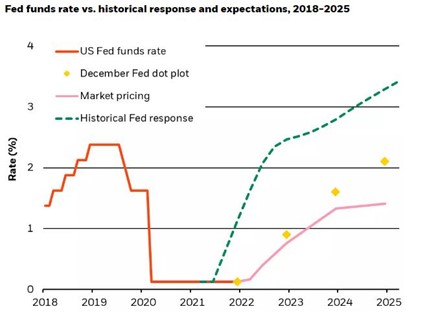 Inflation and central bank response are the top risks heading into 2022. Central banks’ management around the recession as well as its recovery has prioritized employment over price stability in a way that significantly diverges from historical policy response. Even with the Fed signaling policy tightening in December, overall monetary policy is still relatively accommodative, especially true when compared against history.