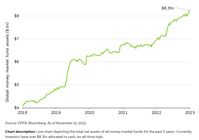 And for the long list of concerns that can at any point hurt markets, we do take some comfort in seeing the large (and still growing) amount of cash/money market funds with the potential to be deployed in something more productive.