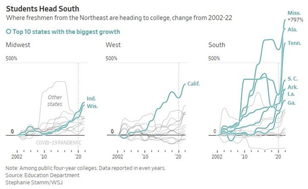 COLLEGE BOUND & HEADED SOUTH: This is interesting. Is it the sweet tea, football, or warmer weather?
