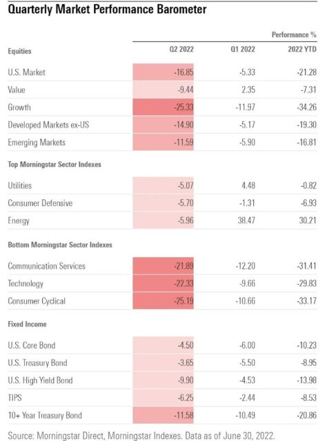 As challenging as Q1 was, the second quarter was among the worst for investors. After suffering (rare) losses in Q1, a typical “balanced” portfolio suffered double-digit losses in Q2 alone, seen only in the Great Depression and the Global Financial Crisis. The Russian invasion has faded a bit in media coverage, but its devastating impact on food and energy prices remains.