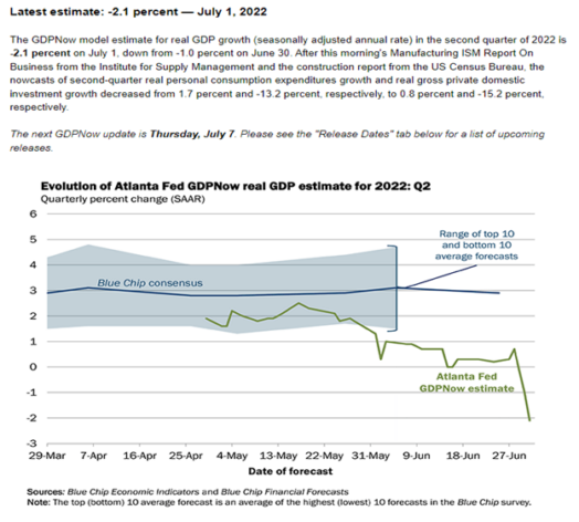 When the final Q1 GDP tally showed a negative actual number, it was generally accepted as an anomaly driven by a surge in imports that cut the official number. But now, given the technical definition of a recession as two consecutive quarters of negative GDP growth, it appears we may get an official “recession” call.