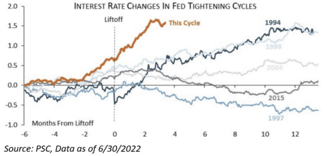 If the Fed has its way, this economic slowdown will put a lid on this surging inflation. They can then back off their rate hikes and return to a more neutral stance. Equity investors would likely welcome this, as the current state of Fed policy is the tightest we’ve seen in recent decades: