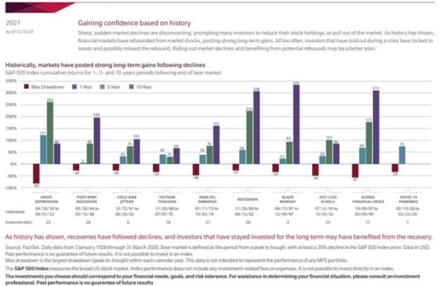 We also take comfort in the ingenuity of capitalism and the history of markets, which have ultimately rewarded long-term investors throughout a range of unique bear market environments: