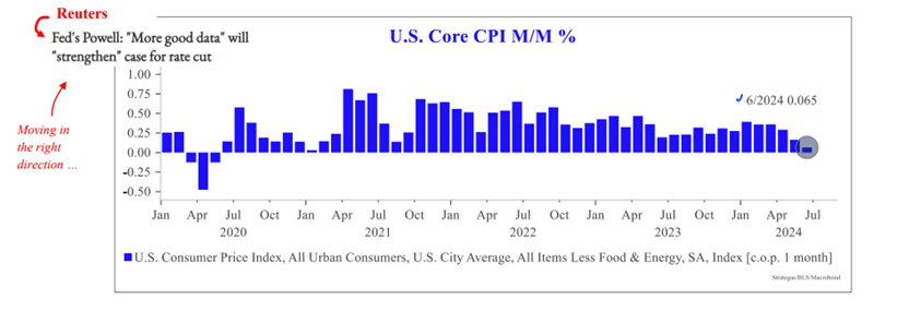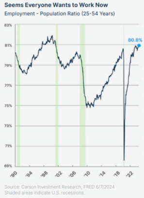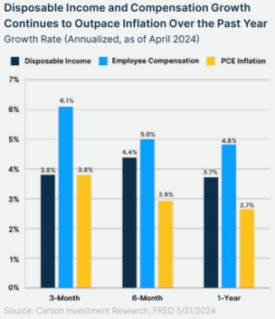 We find ourselves in an interesting place as 2024 passes the halfway point. While it sometimes feels like stocks can’t possibly go higher with all that is happening in the world, the fundamental backdrop appears quite healthy. We’re not growing at the pace we were a year or two ago, but that means inflation is no longer the headwind it was back then either: