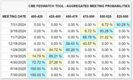It appears the Federal Open Market Committee (FOMC) is finally ready to cut rates from their current target of 5.25-5.50%. It will not likely happen in July, but markets are forecasting a 0.25% cut in September, and they look pretty confident that a full 1% will be cut by March.