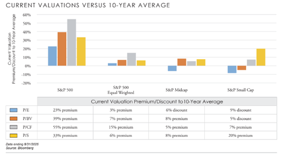 DO VALUATIONS EVEN MATTER?:  Markets quickly bounced back from the Tariff Tantrum. In Q1 the Financial Entertainment Complex was contemplating the end of capitalism or the collapse of the US dollar. Now they turn their attention to historic valuations and impact of MAG7 and AI related spending. In our opinion, valuations will always matter. And we happen to believe diversification is an investors best friend. We’ve never invested in “just” the S&P 500. Now is a great time to review your allocation, cash reserves, income expectations, and personal circumstances with your advisor. Prudent portfolio management happens only in the context of a personal financial plan.