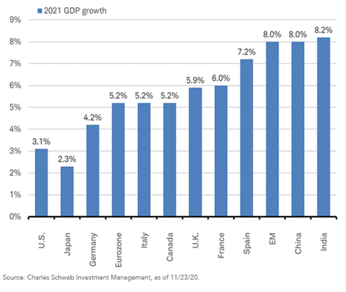 Many of the concerns we carried into 2020 will certainly carry over into our view related to the long-term prospects for investors once markets eventually normalize to a post-pandemic period. We expect the economic story of 2021 to be focused on when the economy will start to reopen, how long it will take for the economy to get back to normal, and the magnitude of stimulus provided until that happens.  Global GDP growth estimates look strong, especially for non-US economies: