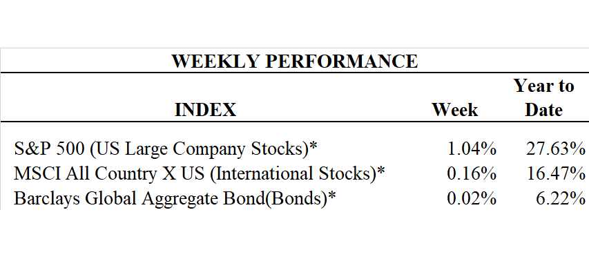 NOVEMBER WAS A STRONG MONTH FOR THE U.S. MARKETS:  The shortened trading week ended as another positive week and capping off a month with a 3% gain (approximately).  This time of year, a key driver is consumer behavior.  Are they shopping?  Although it is too soon to know for sure, solid data on household spending and orders for durable goods early in the week created some early optimism this holiday season.  A solid sign of consumer spending came in late on Friday when it was reported that online sales for Black Friday hit a new record at $5.4 billion as of 9:00pm, about a 22% increase from last year.  U.S./China trade issues didn’t move markets much this week, despite concern about Chinese retaliation to President Trump signing a bill put on his desk by the Congress that supports Hong Kong protestors.  With the latest round of tariffs set to begin on December 15, creating the latest deadline, what happens there will likely make or break the month of December, despite what consumers do.