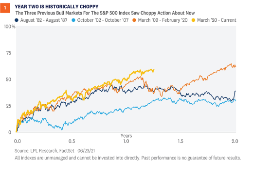 The first half of 2021 brought corporate earnings and economic data in line with or ahead of expectations. First-quarter S&P earnings came in well ahead of expectations, and actual US GDP growth was 6.4% in Q1. The Atlanta Fed’s GDPNow Forecast is currently estimating second-quarter growth to be above 8% growth on an annualized basis.